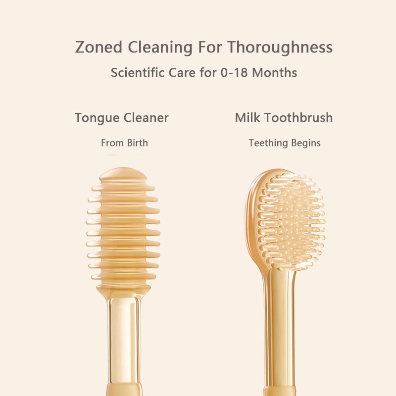 • Comprehensive Baby Toothbrush : Includes baby tongue cleaner and baby toothbrush, one-piece molding without risk of falling off. With a safety prompt line to prevent accidental injury to the baby’s mouth. Oral partition care is more thorough, creating a fresh oral environment. It is also conducive to the baby’s cultivation of good oral hygiene habits.